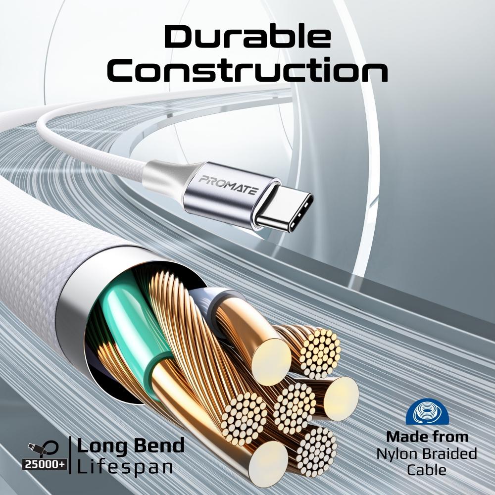 مصنوع من PVC عالي الجودة، نهايات من سبائك الألومنيوم، وطبقة خارجية مضفرة من النايلون، هذا الكيبل مصمم ليدوم ويتحمل الاستخدام اليومي. يضمن هذا البناء المتين طول العمر، مما يجعله خيارًا موثوقًا لجميع احتياجاتك في الشحن ونقل البيانات.